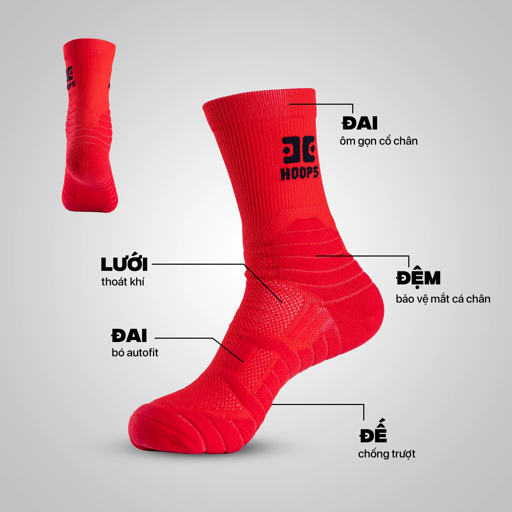 Tất Thể Thao Hoops Premium mang đến nhiều lựa chọn màu sắc giúp bạn dễ dàng thể hiện phong cách và cá tính riêng biệt. Thiết kế ôm sát cùng khả năng hút ẩm tốt hỗ trợ tối đa khi vận động cường độ cao, khiến Premium trở thành lựa chọn đáng tin cậy cho các trận đấu bóng rổ bán chuyên và chuyên nghiệp.